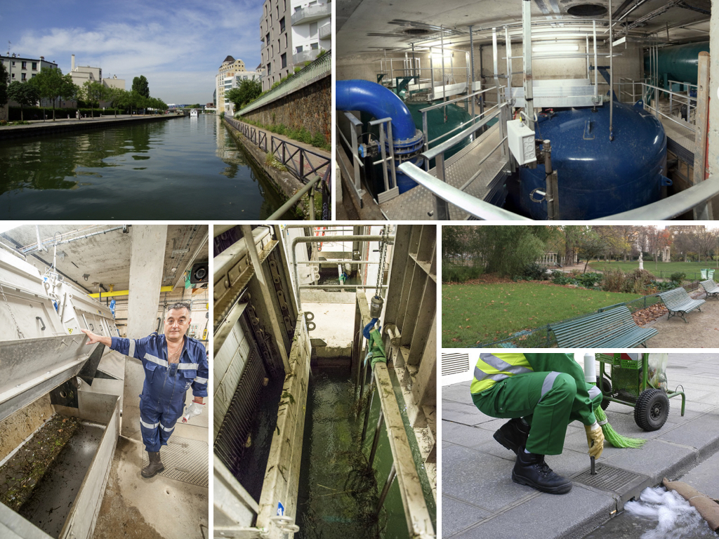 La Ville de Paris comporte une spécificité qui pourrait constituer une réponse : le réseau d’eau non potable. Ce dernier, conçu au milieu du XIXème siècle pour l’arrosage des espace verts et le nettoyage de la voirie, tire son eau du Canal de l’Ourcq et de la Seine. L’infrastructure composée du réseau et d’usines de dégrillage permet de produire une eau moins chère et moins énergivore que l’eau potable. Dès lors comment rafraîchir l’espace public à partir d’une eau non potable en respectant les normes sanitaires ?